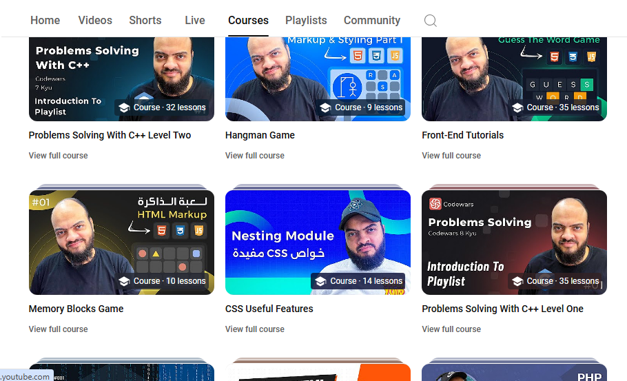 الدروس منظمة بشكل جيد في قوائم تشغيل تغطي المسارات التعليمية كاملة، بدءًا من الأساسيات وحتى المواضيع المتقدمة.